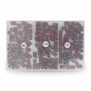 Caja con 150 barrilitos. Grano 80, 120 y 180. Incluye una punta porta barril de acero.