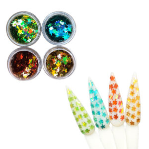 Acetato en forma de tréboles tono metálico tornasol para encapsular